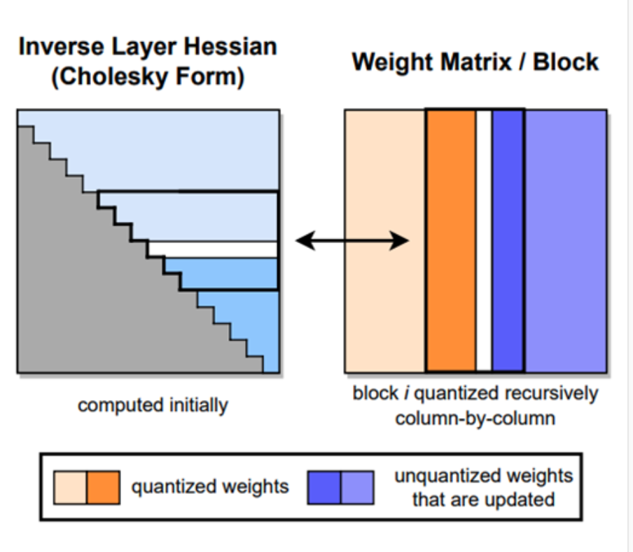 - 在逐列量化的过程中,GPTQ 需要不断更新 Hessian 的逆矩阵。