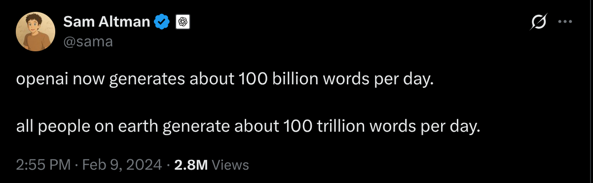 - 引用(tweet):https://x.com/sama/status/1756089361609981993